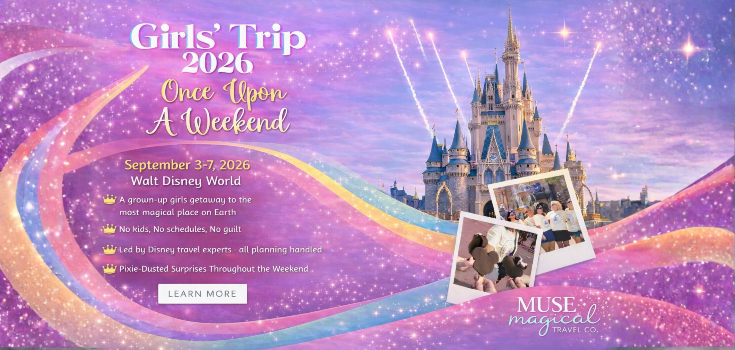Embark on a magical journey to Disney destinations with Muse Magical Travel. Whether you dream of exploring the enchanting theme parks, setting sail on a Disney cruise, embarking on an adventurous Disney expedition, or unwinding at a luxurious Disney resort, we are here to make your Disney dreams come true. Let us handle all the details and secure the best deals and add-ons for your unforgettable Disney experience. Start planning your Disney getaway with us today!